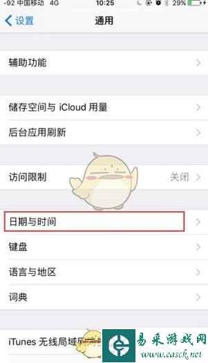 1.首先在下载安装游戏之前,先将时间往回调,这点要切记,如果是先下载游戏,再调时间就不会起效哦。比如调到2017年12月某一时间就差不多了,尽量不要调太早,因为要游戏正常进行还需要你不断的手动往前调时间,直到正常时间为止。 因为最主要的三叶草,两三个小时会长满,如果时间调的过长,草也不会多长,草收的太少,就无法正常的给青蛙提供食物和物品了。 IOS系统苹果手机调整系统时间的方法 设置-通用