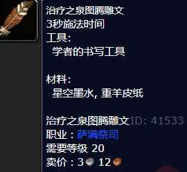 魔兽世界治疗之泉图腾雕文怎么获得很多玩家不知道,wlk的很多铭文很重要,可以获得很好的属性收益,是每个玩家必备的。下面就来看看wow怀旧服治疗之泉图腾雕文获取方法。 魔兽世界14天游戏时间免费领取地址:点击查看 魔兽世界治疗之泉图腾雕文怎么获得