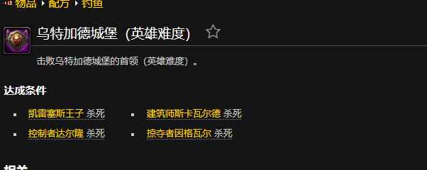 魔兽世界中有着许许多多的成就,今天给大家带来的是乌特加德城堡成就,相信很多小伙伴们不知道乌特加德城堡成就怎么完成,那么小编给大家带来具体完成方法。 魔兽世界14天游戏时间免费领取地址:点击查看 乌特加德城堡成就攻略击败乌特加德城堡的首领(英雄难度)。 达成条件: 杀死凯雷塞斯王子 杀死控制者达尔隆 杀死建筑师斯卡瓦尔德 杀死掠夺者因格瓦尔