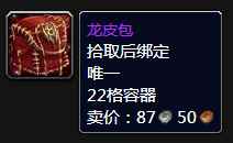 WLK版本背包最大容量就是22格,因此龙皮包很受玩家喜欢。 |