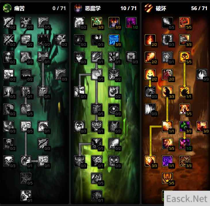 在魔兽世界wlk版本上线前,一定有许多选择玩术士这个职业,那么魔兽世界wlk术士的天赋应该怎么选择呢,如果有不知道的小伙伴,那么下面就给各位推荐术士三系天赋雕文的选择,希望能提供到帮助。 魔兽世界14天游戏时间免费领取地址:点击查看 魔兽世界wlk术士三系天赋怎么选推荐:魔兽世界wlk全职业天赋雕文大全 毁灭术士 天赋75级