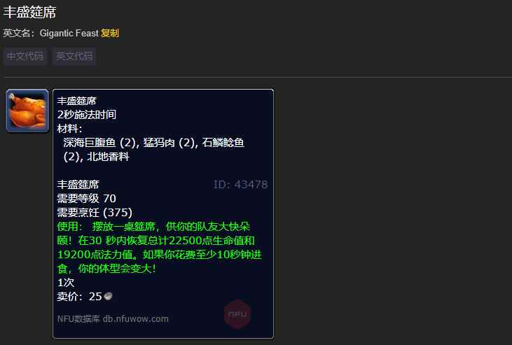 在魔兽世界中,想必现在有很多小伙伴对于深海巨腹鱼有什么用。 具体具体用途有哪些,相信很多小伙伴好奇,那么今天小编就为大家带来了深海巨腹鱼用途。 魔兽世界14天游戏时间免费领取地址:点击查看 深海巨腹鱼用途深海巨腹鱼可用于烹饪丰盛筵席 使用后:摆放一桌筵席,供你的队友大快朵颐!在30 秒内恢复总计22500点生命值和19200点法力值。如果你花费至少10秒钟进食,你的体型会变大!