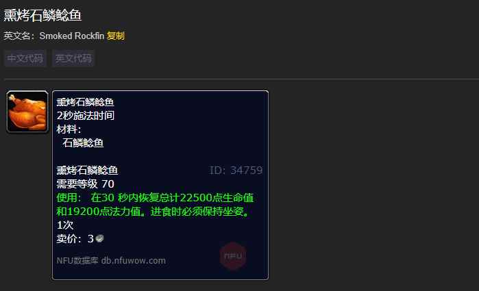 在魔兽世界中,想必现在有很多小伙伴对于石鳞鲶鱼有什么用。 具体用途有哪些,相信很多小伙伴好奇,那么今天小编就为大家带来了石鳞鲶鱼用途介绍。 魔兽世界14天游戏时间免费领取地址:点击查看 石鳞鲶鱼用途介绍可以用于烹饪: 熏烤石鳞鲶鱼:使用后在30 秒内恢复总计22500点生命值和19200点法力值。进食时必须保持坐姿。
