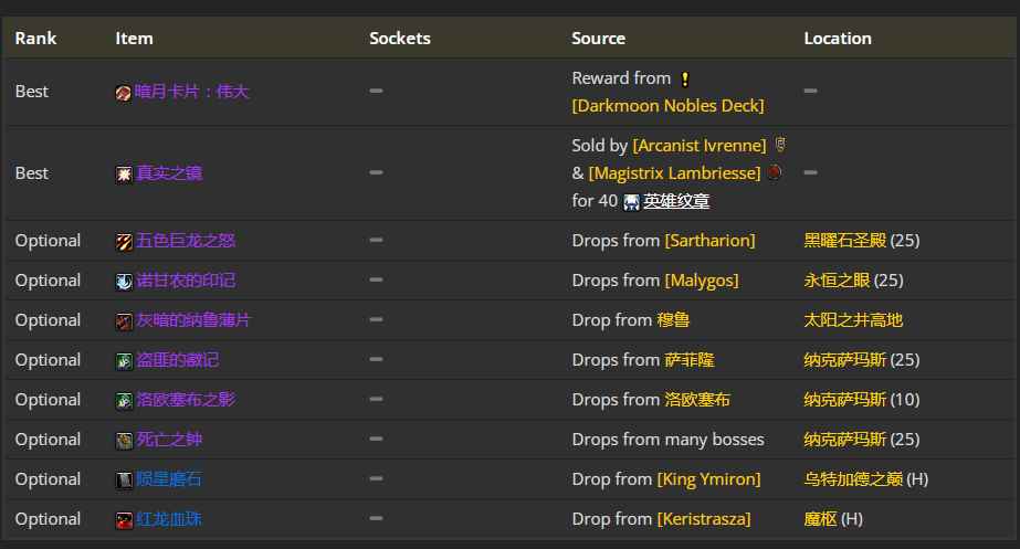 护符装备团本前的最优解是暗月卡片:伟大、真实之镜,P1阶段是暗月卡片:伟大、真实之镜 团本前: