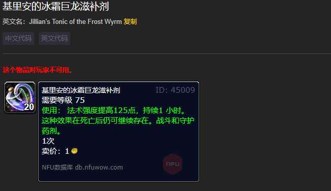 魔兽世界基里安的冰霜巨龙滋补剂有什么效果