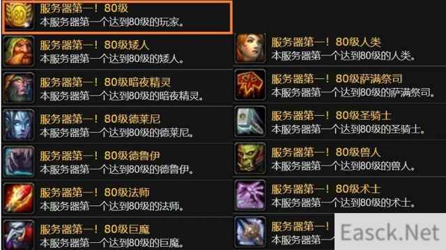 11.争夺“服务器第一”成就:如果玩家想成为第一个到达80级的玩家,获得某职业服务器第一的成就,就需要提前做满25个任务,等到WLK再提交,这可以让你比别的玩家获取额外半级的经验,这些经验对于玩家能否获取成就至关重要。 WLK的服务器第一头衔一共有43个,包括21个种族和职业第一,14个专业,1个全声望崇拜和7个团本首杀。当然玩家最终能否服务器登顶,还得看他是否得到一群好朋友的协助和优秀的升级路线规划。