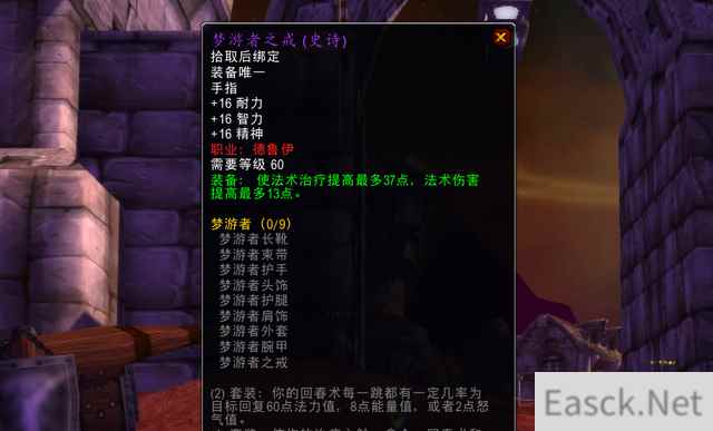 6.德鲁伊获取梦游者两件套:梦游者(T3)两件套效果让回春术每一跳都有几率为目标恢复60法力、8点能量或者2点怒气值,在巫妖王之怒中,德鲁伊将在恢复系天赋树的尽头获得一个名为“复兴”的新天赋,这个天赋效果和梦游者两件套相似。 如果这两个特效可以叠加,那么梦游者2件套将成为德鲁伊在获取T7套之前的最强装备。