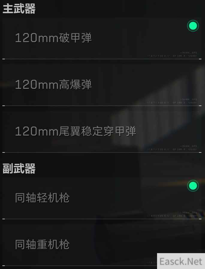 其中副武器同轴机枪有轻机枪和重机枪两种选择:轻机枪射速更快,但射程近且伤害相对较低,重机枪射速较慢,但射程远且单发伤害相对更高。