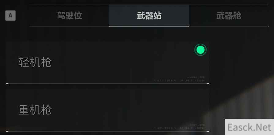 二、武器站: 其他两个战斗位分别操控武器站和武器舱,武器站可装配轻/重两种机枪,类似主驾驶位的副武器特性,轻机枪射速快,非常适合消灭敌方步兵及无装甲载具,重机枪射速低但伤害高,对付远距离单位更加精准。