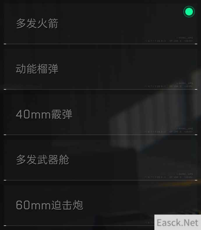 多发武器舱:可以齐射四发榴弹炮,在近距离范围内对敌方单位造成多段范围伤害,但相比动能榴弹其换弹速度较慢,更适合在防御作战中使用。