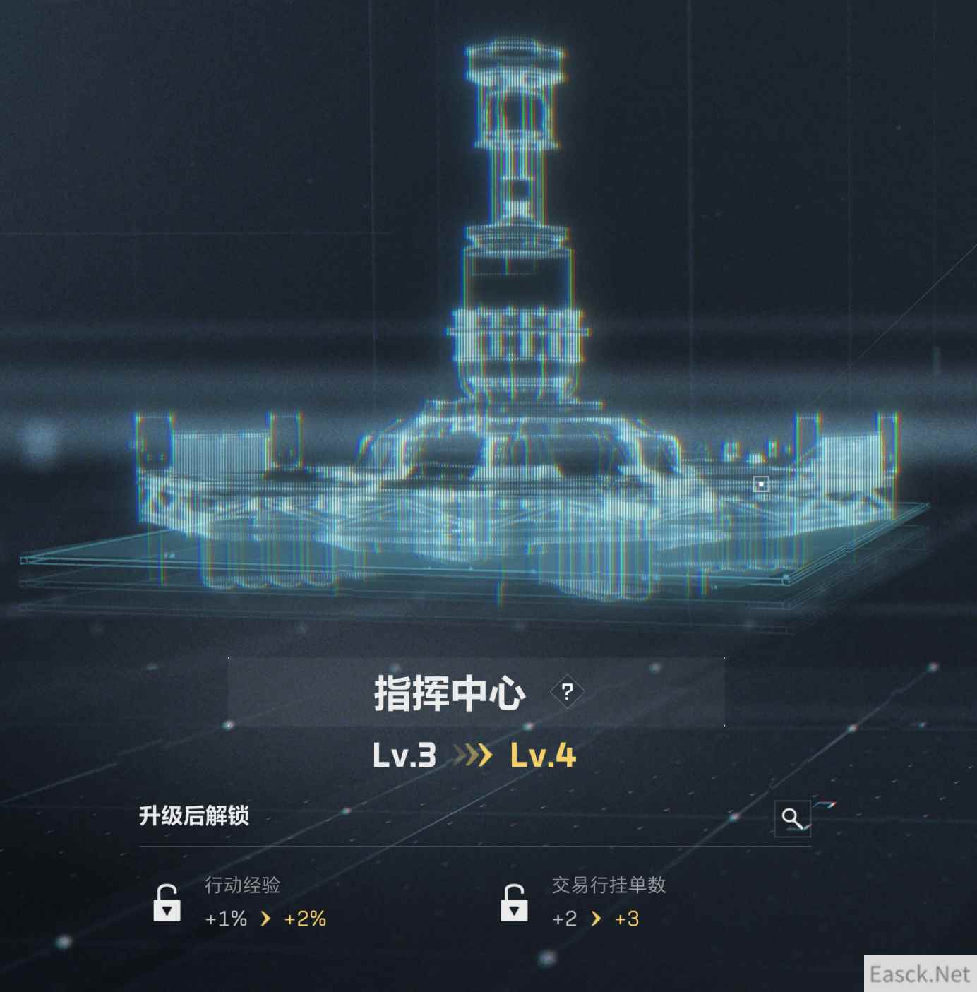 技术中心升级 而升级指挥中心,则可以提升行动经验加成和增加交易行上架数量,让干员拥有更多交易机会。