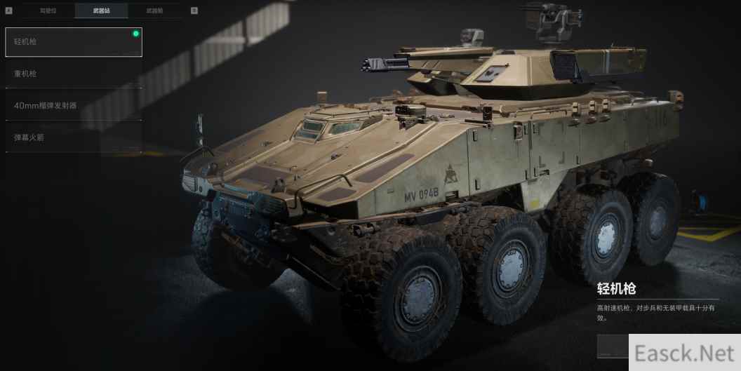 三、武器站 接下来是载具的武器站。 武器站由非驾驶位成员操作使用,主要配备轻型武器,用于辅助配合载具主武器进行攻击。