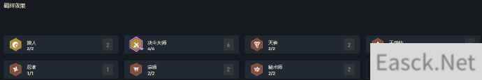 阵容构成 疾风剑豪 亚索(天选决斗大师)、武器大师 贾克斯、无双剑姬 菲奥娜、盲僧 李青、暮光之眼 慎、封魔剑魂 永恩、风暴之怒 迦娜、复仇之矛 卡莉丝塔 羁绊情况