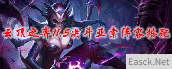 云顶之弈11.5决斗亚索阵容搭配是:疾风剑豪 亚索(天选决斗大师)、武器大师 贾克斯、无双剑姬 菲奥娜、盲僧 李青、暮光之眼 慎、封魔剑魂 永恩、风暴之怒 迦娜、复仇之矛 卡莉丝塔。