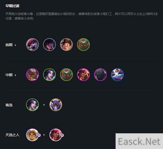 搜牌节奏 如果是连败的开局6级小D一波质量然后到了4-1再D自己场面质量到5个2星,如果7人口抽到的卡数量不太能够追3那么直接拉8去找高质量的猪女剑魔时光2星。 阵容分析 难过渡,容易在没有成型的时候被放血。比较怕带水银的天使,前排装备如果不太好的话容易打不出来控制。不过如果前排质量够加上3星妮蔻基本能吃鸡。 |
