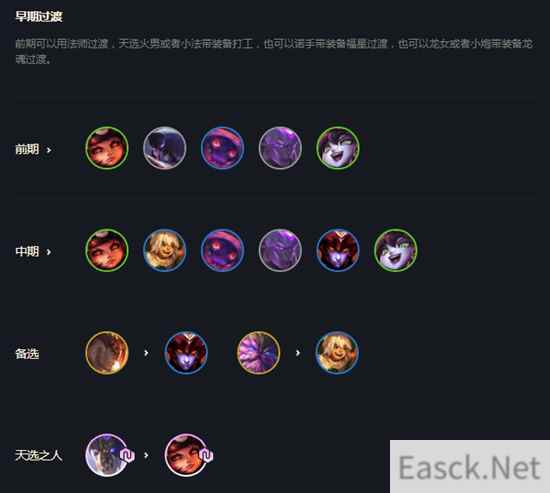搜牌节奏 正常情况,4-5速8D牌,D出2星龙王为止,若是过度的非常差的话最好4-1打完野怪就拉7小D一波维持血量。有一只龙王就可存钱上八。 阵容分析 克制大部分后排c位的阵容,如天使,神射等,中前期比较害怕战士和刺客阵容如忍刺,战神等,剑魔也比较克制,需要非常注意,后期成型加上法转乌鸦非常强力,几乎没有对手,最大的缺点就是过度相较于其他阵容非常非常的难,往往成型后就没有容错了。 |