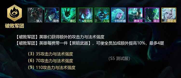 游戏《云顶之弈》中,S5赛季破败之王佛耶戈装备推荐【科技枪+水银+龙牙】。佛耶戈这个英雄可以说是s5赛季的版本之子了,其羁绊破败军团可以根据队伍中持有的黑暗装备数量提供属性加成。所以玩家们在养成佛耶戈阵容的时候,可以在选秀与武器库中多获取一些黑暗装备,以增强阵容的强度。