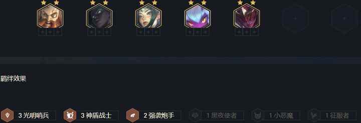 云顶之弈S5.5已经上线,其中英雄和羁绊都有所改动,而且新增加了光明哨兵和炮手两个羁绊,那么云顶之弈S5.5光明炮手怎么玩?下面就给大家带来云顶之弈S5.5光明炮手阵容搭配。 云顶之弈S5.5光明炮手阵容搭配光明炮手 运营:灵活,保证3-2时6人口,4-1时7人口,5-1时8人口 过渡:奥拉夫 赛娜 艾瑞莉娅 崔丝塔娜 李青