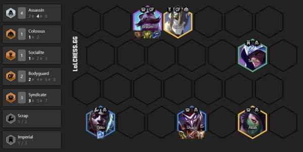这套就是上面摩昂说的比较灰心的阵容,但测试中强度还是比较高,PBE一天一个样,具体强度咱们现在也说不准。6D赌狗,比沙弥拉好成型。阵容强度更多是依赖3星的多寡。 6D赌大嘴