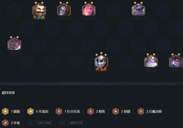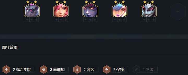 云顶之弈S6辛迪加刺客阵容搭配:过渡:德莱厄斯、卡特琳娜、婕拉、蕾欧娜、萨科,成型:德莱厄斯、婕拉、塔里克、萨科、布隆、奥莉安娜、悠米、阿卡丽,核心装备饮血剑,无尽之刃。