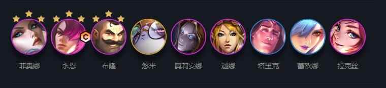 第一种站位全部部顶在第一排,快速清场的一个站位,当然也要看名流的位置,风女一定要站第一排和布隆发条打一波连环控制。猫咪放在永恩边上不要上错人了。 阵容站位二