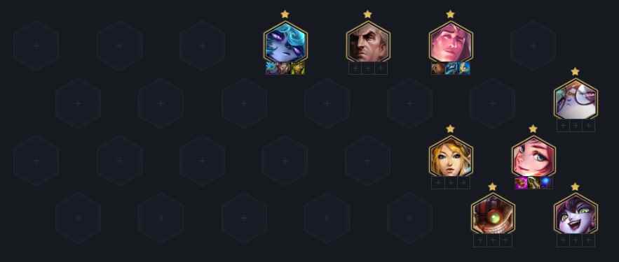 这套阵容如果拿到急救用具海克斯时,对阵容的生存能力提升非常大,阵容的组成与版本答案之一的黑白魔法师阵容基本一样,唯一的变化是将前排的防御核心改成了塔里克,给塔里克龙牙和反甲2件防御装备,再通过4黑魔法师羁绊和大天使之杖来提升法术强度,让塔里克释放技能获得更高的治疗和护盾效果。阵容的核心输出是拉克丝,拉克丝在在4黑魔法师和2战斗学院的羁绊中,有不俗的法术强度提升,释放技能可以进行收割。