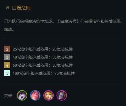 想要将急救用具的效果发挥到最大化,黑白魔法师阵容是最佳选择,因为白魔法师英雄的技能都是治疗和护盾技能,白魔法师羁绊还能大幅度提升治疗和护盾效果,5白魔法师羁绊可以提升100%的治疗和护盾效果,完全无惧对面的重伤减治疗效果。塔里克的技能可以治疗自己和生命值最低的队友,如果溢出的治疗会转化成护盾,塔里克也是非常优秀的前排坦克,现在有种套路是给塔里克出大天使之杖,随着战斗时间的增加,大天使之杖会给塔里克不断叠加法强,释放技能增加的护盾肉成条形码。 黑白魔法师阵容