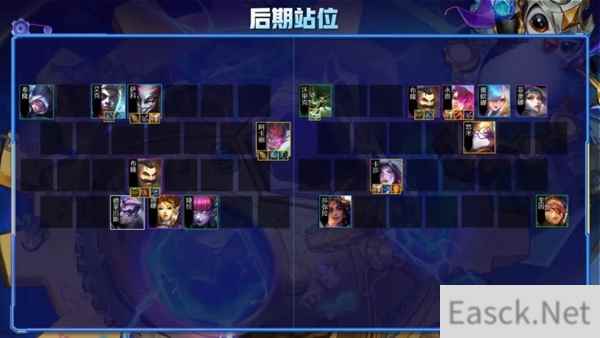 2阶段:2-1不升人口,2-4自然到4,2-6F一下,2-7自然到5。 前期走连败,不卡经济的情况下只留青钢影即可。能开3约德尔养经济最好,如果场外有连败空城,我们也直接空,没必要在意那几滴血量,5连败被断的话太影响节奏了。推荐走满5连败且在装备互选阶段时拿金币,这样的话就可以在2-6F一下,方便打石头人时得到阵容体系牌。 3阶段:3-2升到6级,3-5选秀回来冲7梭哈。 3-1到3-5阶段选秀前期保血即可,推荐使用炼金发明狼人过渡,狼人在中期配合3炼金的加成是很猛的,我们不会掉太多的血量。3-2上6之后要保着血量去打,除了永恩装备需要散件,其他的有什么强势的能合就合,比如吹风、狂徒,正义等等,均可给到打工卡过度。 选秀回来3-5拉7在找永恩及体系牌的同时,注意留队友小丑。3-5上7人口后基本都有40块钱去D卡,留10-20块钱即可,第一波就算D不到永恩,也要把阵容体系卡都D出来,留一些钱准备打完狼再D。直至出了一张永恩且其他低费卡均2星或者永恩2星,低费卡质量一般,我们再选择存钱上8. 7级阵容搭配十分灵活,基础为6挑战加日女凑双学院。如果有挑战转的话,给到布隆开2保镖;没有挑战转,也可以上楚雨荨开双执法;名流圈位置在前两排则可以上宝石,将名流圈给永恩吃,提高伤害。 4阶段:场面质量足够后开始存钱准备上8,质量不够则在7级D 打完狼4-1还会有一个忠诚符文,在永恩没有2星且场外永恩出了很多的情况下,一定不能上8,不然即便上8,在你存钱过程中卡池永恩也会被同行抢走,因此一定不要贪着上8,7级搜干即可。 5阶段:存钱至抛去上人口外还剩20时直接抬8 上8根据D卡情况而定,出去上人口花费外能保证剩余20-30D卡,我们就可以直接抬人口。上8提升特别大,可以挂布隆,日女开双保镖与2学院,布隆打足控制,日女放技能提高队友抗性;如果有挑战转的话找卡莎直接开8挑战,挑战转可给到布隆或者杰斯,看这两张卡质量而定,2星杰斯要比布隆强,一星则没必要换。 6阶段:质量足够后开始存钱上9或者考虑追3星 6阶段选择存钱上9或者追三星,双方需商量一下,兔子建议质量足够的情况下上9是最好的选择。因为9级能找到2星阿卡丽与2星卡莎,均能提高双方阵容上限。 后期站位: