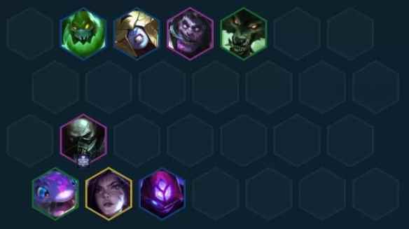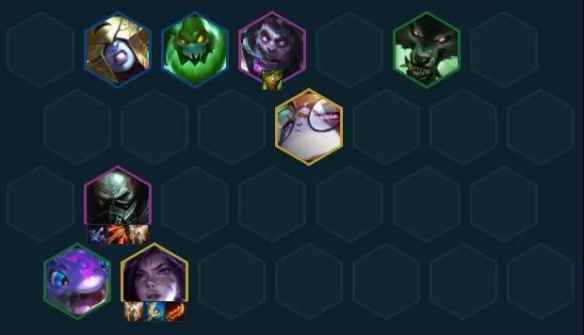 中后期运营: 3-2上6,无论你是用哪种方式过渡,质量不够打需要小搜2星2费卡,这阶段多留一些炼金体系卡。3-5或4-1拉7,花20-30快左右保底D出1张厄加特,把场上卡慢慢换成5炼金3变异,大嘴先穿卡莎输出装打工。