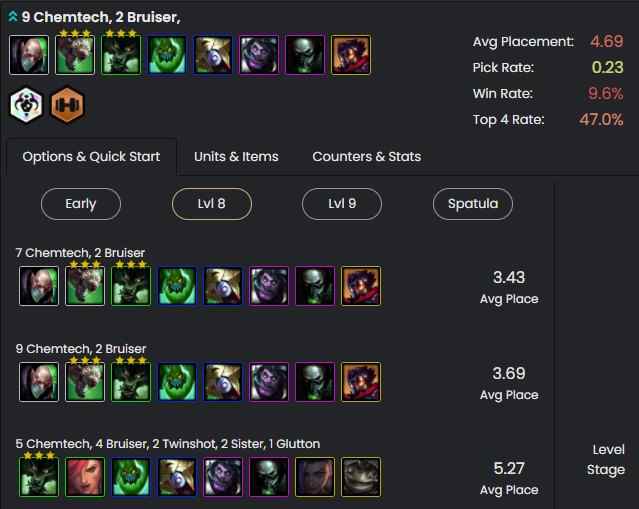大家可能不太理解外服榜和国服榜的区别,外服是将一个阵容体系内的很多种情况融合在一起,但是又不告诉你具体的数据算法,所以方向比较笼统,比如单独算9炼金或者赌狼都很不错,但是他们还会将不知道哪里来的斗枪数据放一起,这种纯机器算法最终数据肯定有误差,加上和国服环境不一样,所以有些阵容放在国服不一定适用,但是大方向基本上一致。
