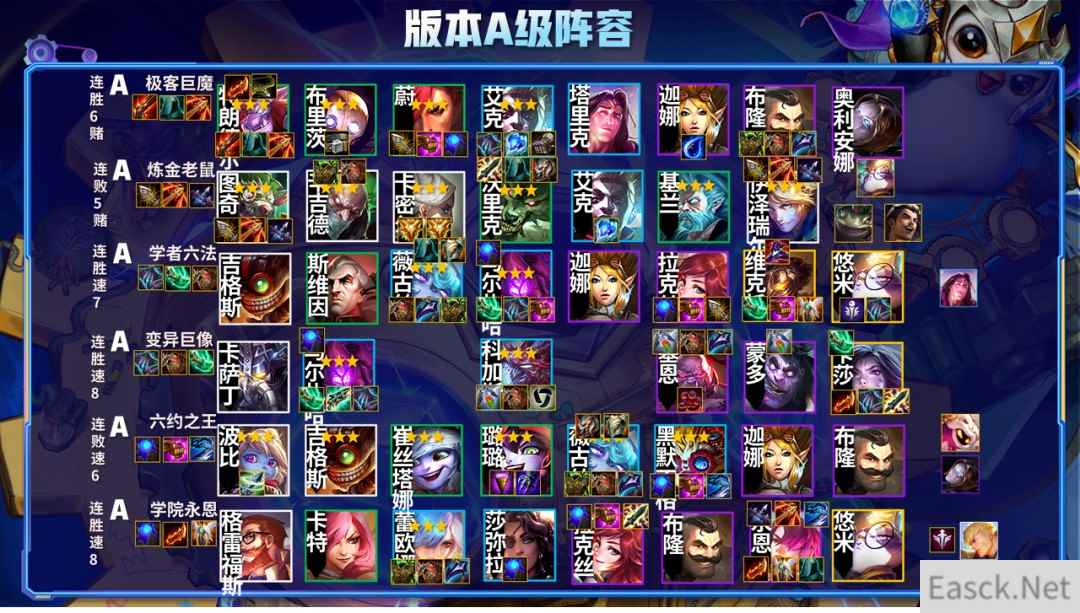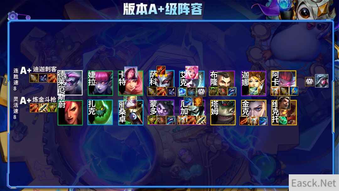 版本综合胜率在52%以上的A+级阵容有2两个,迪迦刺从S榜跌落但依旧是不错的上分阵容,炼金斗枪从C级彻底爬起来了