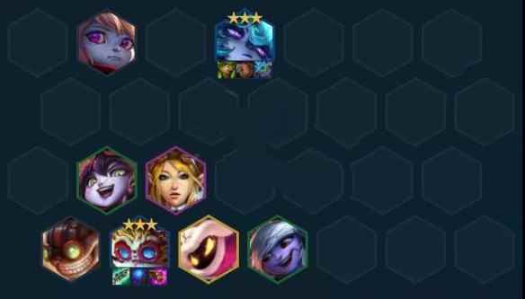 中后期运营: 3-2拉6,6人口需小D一波质量,在这之前嫖到了大头就D2星大头保血,没嫖到最好是一口气D出6约提升战力。6约德尔全员减蓝在中期很强,这阶段可卡利息慢D3星大头和3星1费怪,炸弹人和波比三了即可上7继续追其余约德尔单位,7人口补风女开2极客2学者,之后就保持在7人口D全员3星,直到出了小法再上8。