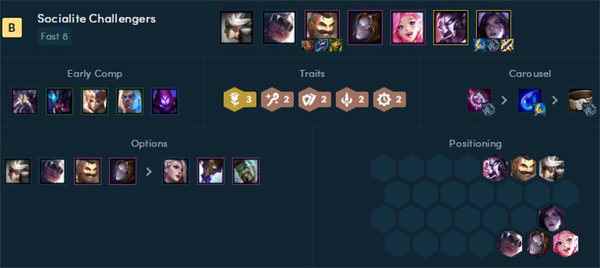 3、名流白魔卡莎 玩法重点:连胜速8 该阵容的核心是五费卡莎,让卡莎在社交名流聚光灯下获得回蓝和输出加成,同时白魔法师提供一定的回复能力,让该阵容整体强度提升。