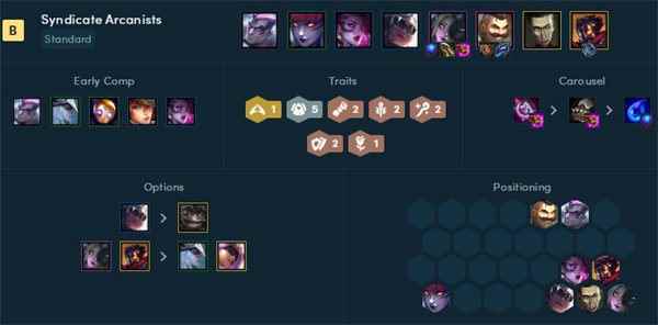 4、辛迪加白魔阿狸 玩法重点:连胜速8 辛迪加加持下的阿狸具有不错的抗性和吸血能力,再加上白魔法师辅助的治疗效果,进一步提升阵容生存能力,前排还有2保镖,攻防都不错。