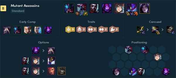 变异战士在3或5时每一场对局都能获得一个不同羁绊加成,这是一个随机改变的羁绊,根据获得的羁绊玩家可以选择不同的变异阵容核心,现在搭配五名变异战士也更轻松了。 1、变异刺客螳螂 玩法重点:常规升级,能D则D 螳螂在变异战士羁绊下边的更强大,同时还有2刺客2格斗家等羁绊,让螳螂的生存和输出能力都不错,同时变异战士中的其他成员可以提供辅助输出,前排也有大虫子等吸收伤害。