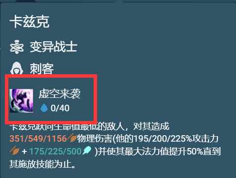 同时卡兹克的最大法力值能够从40点减少为0,基本只要平A一次就能够释放一次技能,技能频率提升,伤害拉爆。 |