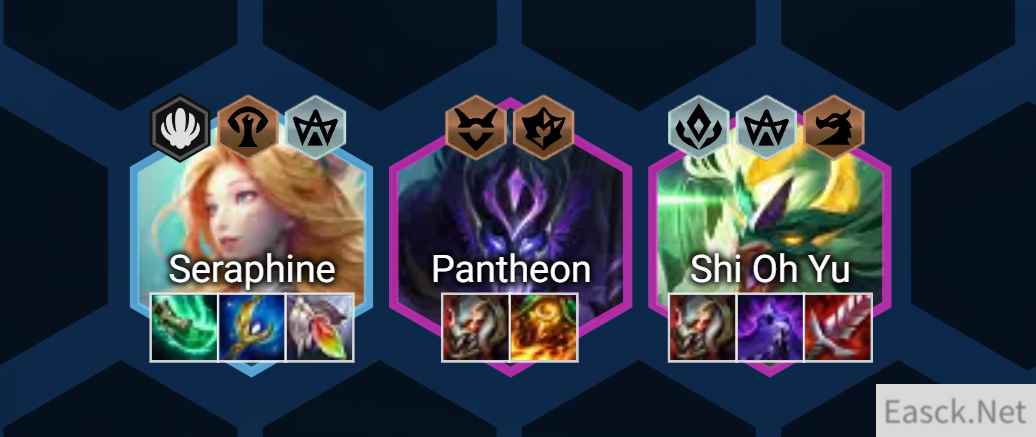 这套阵容的核心是萨勒芬妮,萨勒芬妮在这赛季只是3费卡,但确实3羁绊的强势棋子。技能却非常霸道,可为两格棋子增加高额的护盾,还可附加魔法伤害。咱们这套阵容主要依靠的就是这个技能。 萨勒芬妮在5玉龙羁绊加持下可增加的40%额外攻速,再搭配2魔导基本与装备朔极之矛就可快速释放技能,一局通常可给队伍增加2万+的治疗量,续航能力逆天。