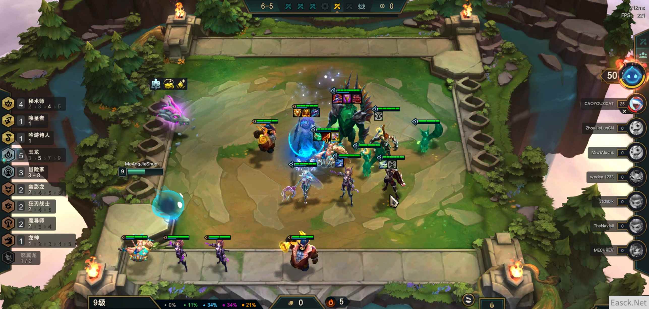 8人口后 4-5/5-1就可升级8人口,搜卡找到石傲玉与潘森,阵容大部分棋子2星稳血后就可攒钱准备升9人口。