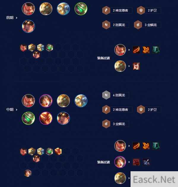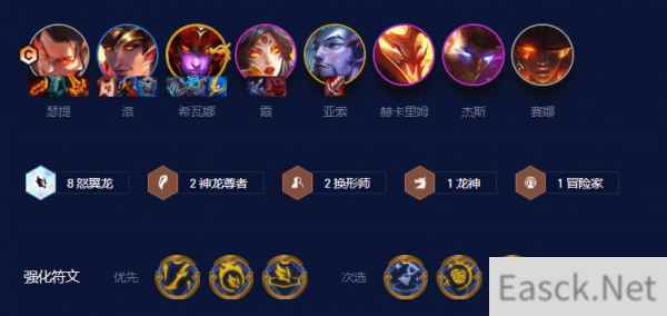 云顶之弈的s7.5版本正式的上线了,新增了很多全新的羁绊和英雄,今天给大家带来的是s7.5中怒翼龙的阵容搭配,那么下面就是具体的阵容搭配内容介绍. 云顶之弈s7.5怒翼龙阵容搭配【八怒翼瑟提】8怒翼龙2神龙尊者2换形 慢D三星:常规模式:前期只拿目标英雄,连胜或连败吃利息,打第一波野怪后存50块钱利息,赌出目标卡三星