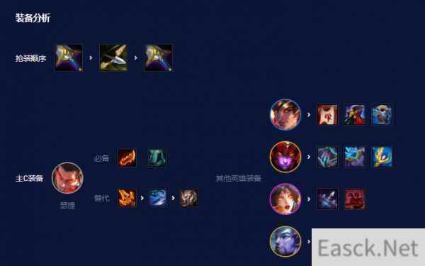 瑟提始终与敌方大部队站同侧,洛带旗子站瑟提和希瓦娜旁,霞如果带轻语,则也挂在瑟提同侧辅助开路,赛娜挂另一边,可以防拉克丝弈子,亚索和杰斯位置灵活,可以帮霞挡一下刺客