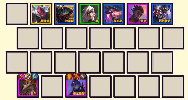 就在最近云顶之弈官方放出了云顶之弈s8的主题怪兽来袭,也推出了一些展示视频,版本更新后各种羁绊效果也更新了,还有新的英雄会上线云顶,那么下面就给大家带来云顶之弈S8四秘术四怪物阵容玩法介绍。 云顶之弈s8四秘术四怪物阵容怎么玩一、阵容搭配 1、阵容构成:蕾欧娜+拉莫斯+蔚+科加斯+艾克+阿利斯塔+索尔+卑尔维斯 2、羁绊构成:4秘术+4怪物 二、强化符文推荐 复苏之风+狩猎律动+星界赐福+怪兽等级:最大+秘术卫士之心+场上任意英雄强化 三、出装推荐 1、主C:卑尔维斯 装备推荐:正义之拳+分裂箭+泰坦 2、主T:索尔 装备推荐:法爆+点刀+大天使 3、蕾欧娜 装备推荐:剩下的装备混搭 四、阵容站位