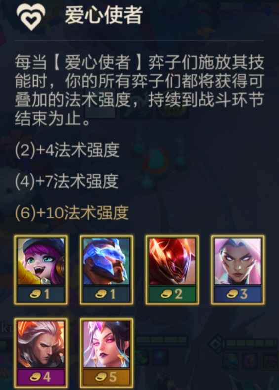 阵容大部分时候只开4爱心羁绊,这点大家一定要注意。低费爱心棋子璐璐与潘森后期强度略差,非常容易被不明AOE灭掉,且站位容易聚堆,被费德提克血克,不是特别契合会大幅度降低阵容坦度,当然有爱心转职的时候,大家可考虑6爱心(要潘森不要璐璐)。 阵容搭配了2福牛与2秘术,艾克、佛耶戈、阿利斯塔这3枚棋子,阿利斯塔有单控,另外两位释放技能可直接突到后排,打乱敌方集火,比没有爱心转职的6爱心来说阵容的收益更高。