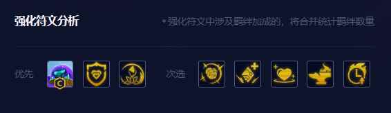 大后期阵容搭配辛德拉,这也是阵容的上限所在, 2.符文推荐 专属符文方面,必备布里茨的动态防御,这是阵容核心。其他的摩昂也测试过如潘森的延迟痛觉与李青的金钟罩强度有,但在当前环境下不是太契合。 强化符文方面爱心使者心徽冕(开6爱心)、珠光莲花(技能可暴击)、组件百宝袋(装备更容易成型)、源计划上行链路(增加法力续航)最优。 其次便携锻炉、复苏之风、飞升、电火花、潘朵拉的装备、应急护甲、浪人、卢登的回声、星守(换妮蔻C)/吉祥物(给佛耶戈)/AI/秘术/淘气心徽等都可考虑。
