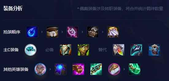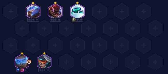 3.装备推荐 布里茨:石像鬼板甲(专属自动)+狂徒铠甲+救赎 娑娜:蓝霸符、珠光护手、科技枪刃 索尔:朔极之矛(如索尔来的早所得珠光与科技枪刃也可给索尔) 艾克:多余坦度装备 辛德拉:捡垃圾,选秀拿朔极之矛最优 主坦布里茨,关键装备石像鬼板甲专属自动,开局大幅度增加布里茨双抗,增强坦度;第二件建议狂徒,2星布里茨血量还是比较低,大后期容易扛不住,有狂徒后大幅度增强生存能力;第三件救赎最优,5秒回复一次生命值,大幅度增加续航能力,如没有就考虑龙牙或圣盾使的誓约。 双C娑娜与索尔,娑娜必备蓝霸符,主要是为了增加技能释放频率,其他法强装都可,索尔必备朔极之矛,提升技能释放频率,其他法强装都可。