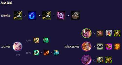 【装备运营思路】 1、有坚守防线就芮尔吃肉装,否则肉装就给艾克;卡莎给斯塔缇克电刃减抗,朔极之矛在高星守下有额外回蓝增益。 2、厄运小姐在有星守转后第二三件上珠光护手和正义之手,拉满输出和续航。