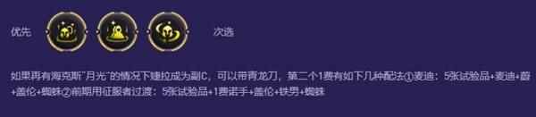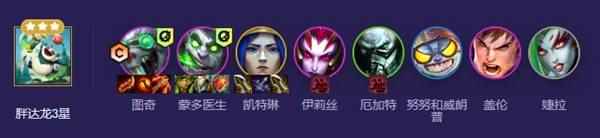 早期过渡 前期用征服打连胜,记得留实验品的牌芮尔和努努,德莱文和螃蟹,乌鸦和婕拉都有羁绊联动德莱文带大嘴的装备打工用征服过渡尽量吃到前2层征服奖励
