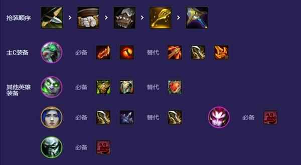 装备分析 老鼠:羊刀必备+第二件攻速装+分裂弓or杀人剑无尽蒙多:狂徒+石像鬼板甲+心之钢or龙牙or反甲有月光的情况:保证蒙多的装备和老鼠的一件羊刀后给婕拉找启动装厄加特三星的情况下:带偷偷或者战士装