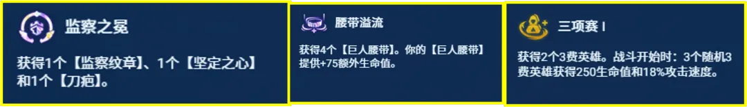 装备选取思路: 主C 克格莫:蓝buf/青龙刀、科技枪、大天使/羊刀; 副C 泽丽:捡剩余物理输出装,不捡也行,前排多做肉装; 肉 刀疤:狂徒、荆棘之甲、龙牙或救赎。 4人口(2-1)开局不需求任何装备和牌和开局,把把硬玩,只有同行才能击败自己; 2阶段连胜连败都能玩,如果打连胜,优先合大嘴的法系装备和肉装;用监察+狙神过度。