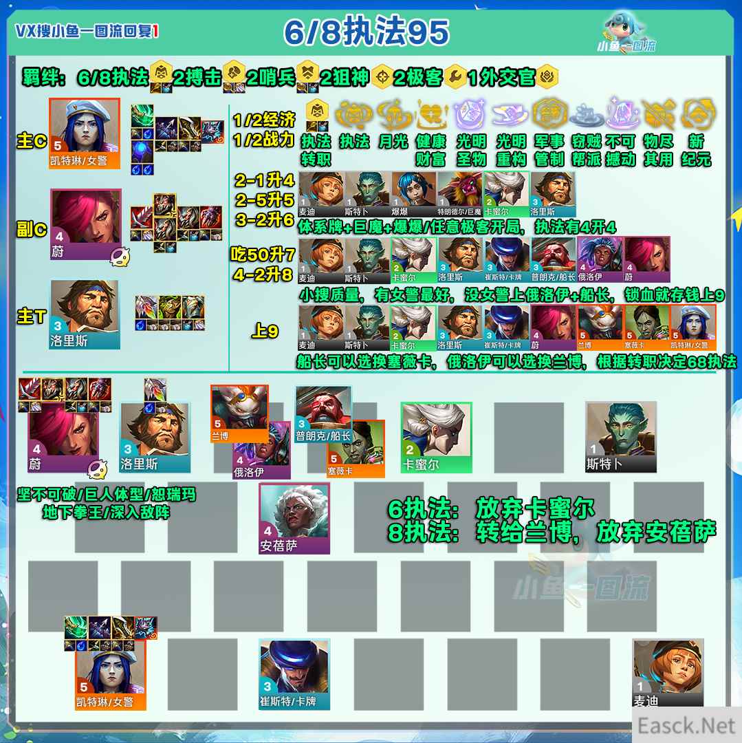 云顶之弈13.3版本上线了,更新了很多新的内容,并且对一些阵容的强度进行了调整,比如执法95阵容,那么云顶之弈13.3执法95阵容怎么玩?下面就给大家带来云顶之弈13.3执法95阵容分享。 云顶之弈13.3执法95阵容分享执法95(54%吃分,16吃鸡,4.2排名) 阵容码:012d120804331837071f2bTFTSet13