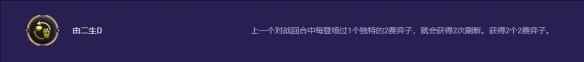 云顶之弈S13双城之战2版本上线一段时间了,经历了一段时间版本更新,不少羁绊,英雄进行了调整,由二生d是游戏中的一个海克斯,那么有不少小伙伴好奇由二生d海克斯怎么触发,下面就来告诉大家。 云顶之弈由二生d海克斯怎么触发答:上场两个不重样的2费弈子触发一次 *国服海克斯效果翻译错误,不是上场一个触发两次